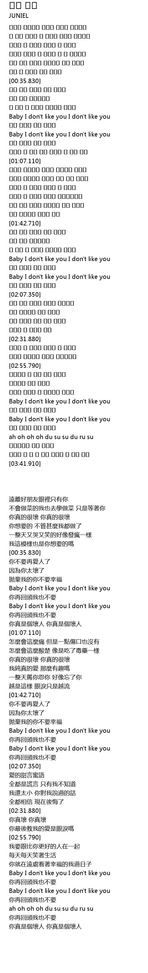 | [03:11.500] | Baby I don' t like you I don' t like you |
