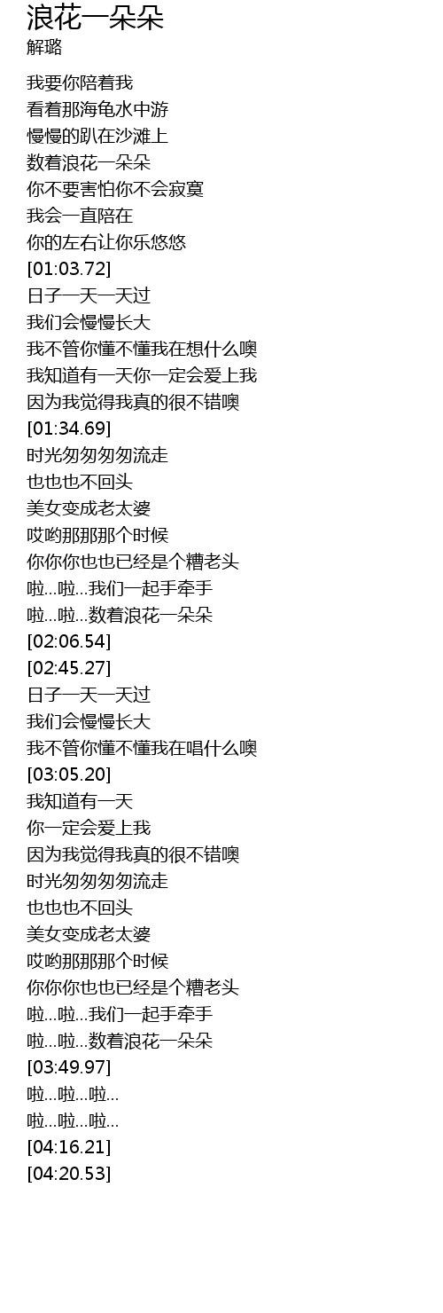 | [03:42.44] | 啦...啦...数着浪花一朵朵 |