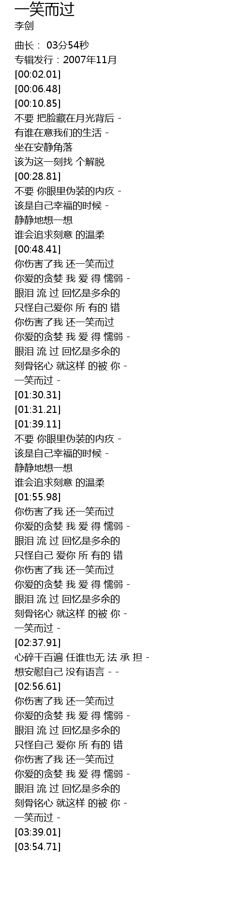 | [01:58.01] | 你伤害了我 还一笑而过 |