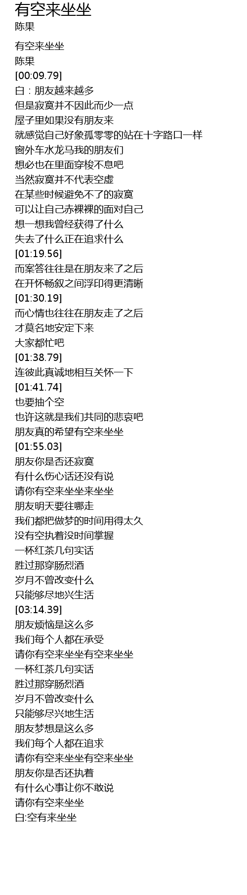 | [03:36.16] | 请你有空来坐坐有空来坐坐 |