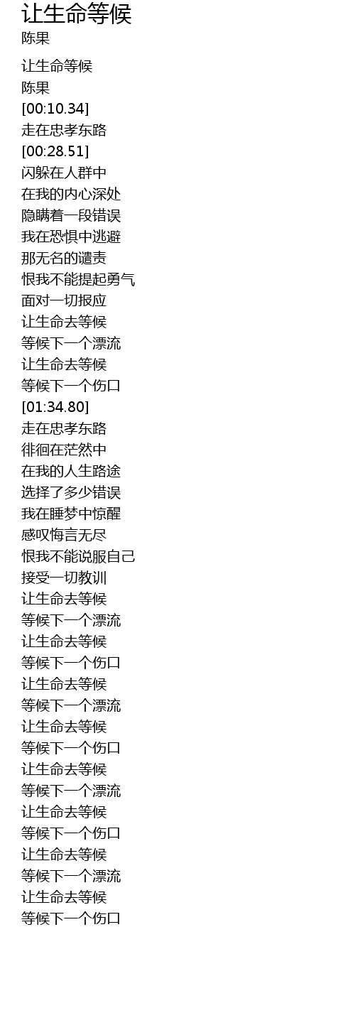 | [03:25.34] | ràng shēng mìng qù děng hòu |