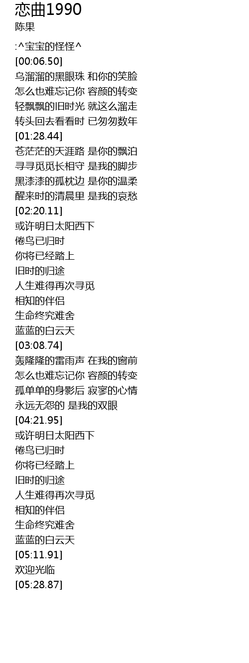 | [00:42.93] | 乌溜溜的黑眼珠 和你的笑脸 |