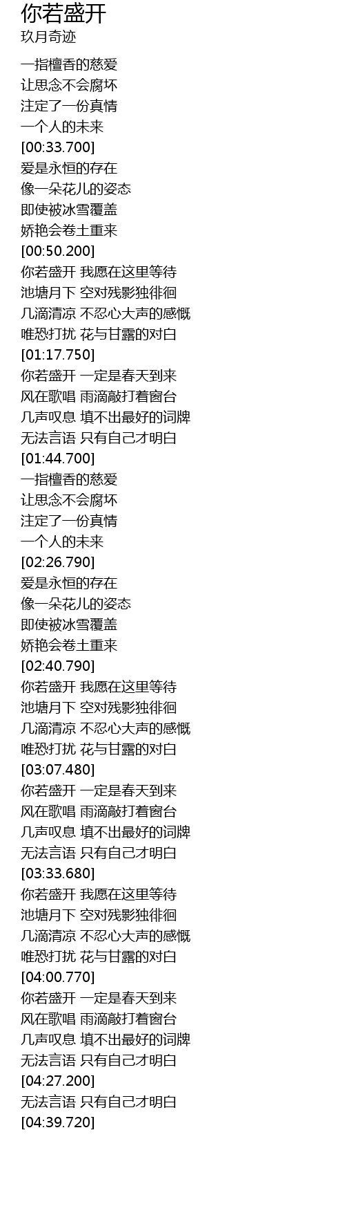 | [03:34.860] | 你若盛开 我愿在这里等待 |