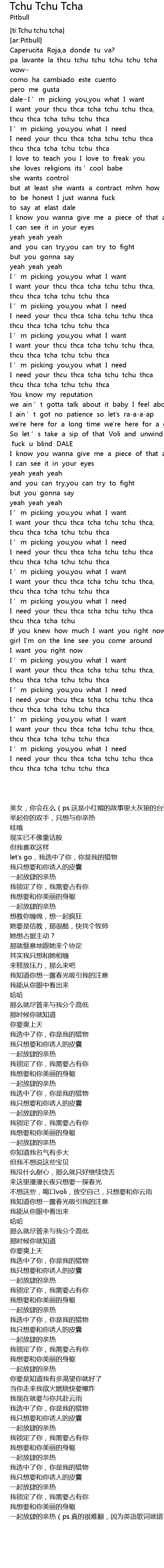 | [00:18.522] | I want your thcu thca tcha tchu tchu thca, |