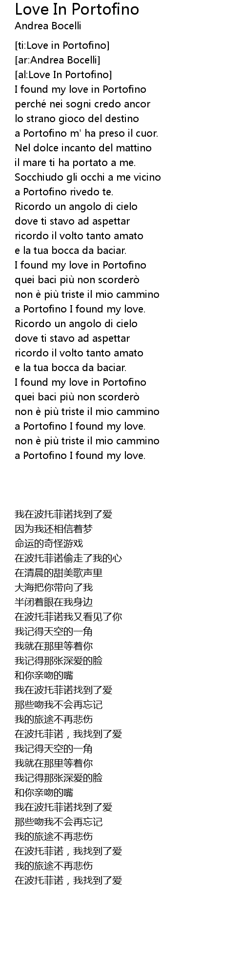 | [02:15.44] | I found my love in Portofino |
