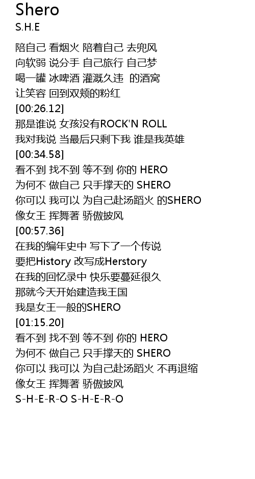 | [00:45.03] | nǐ kě yǐ wǒ kě yǐ wèi zì jǐ fù tāng dǎo huǒ de SHERO |