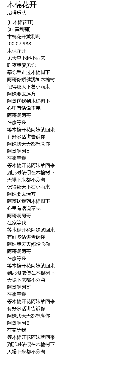 | [00:08.944] | 木棉花开 |