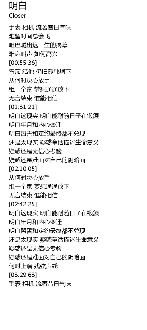 | [01:32.00] | 明白这现实 明白能耐随日子在锻鍊 |
