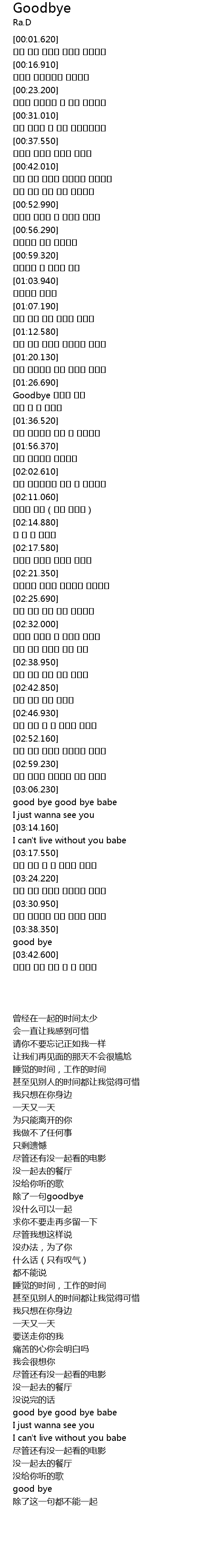 | [01:28.640] | Goodbye 한마디 밖엔 |