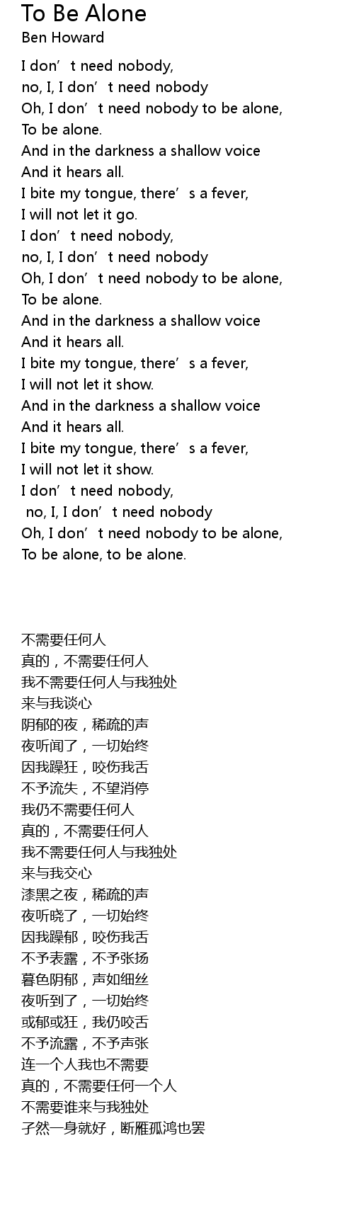 | [02:37.69] | Oh, I don’t need nobody to be alone, |