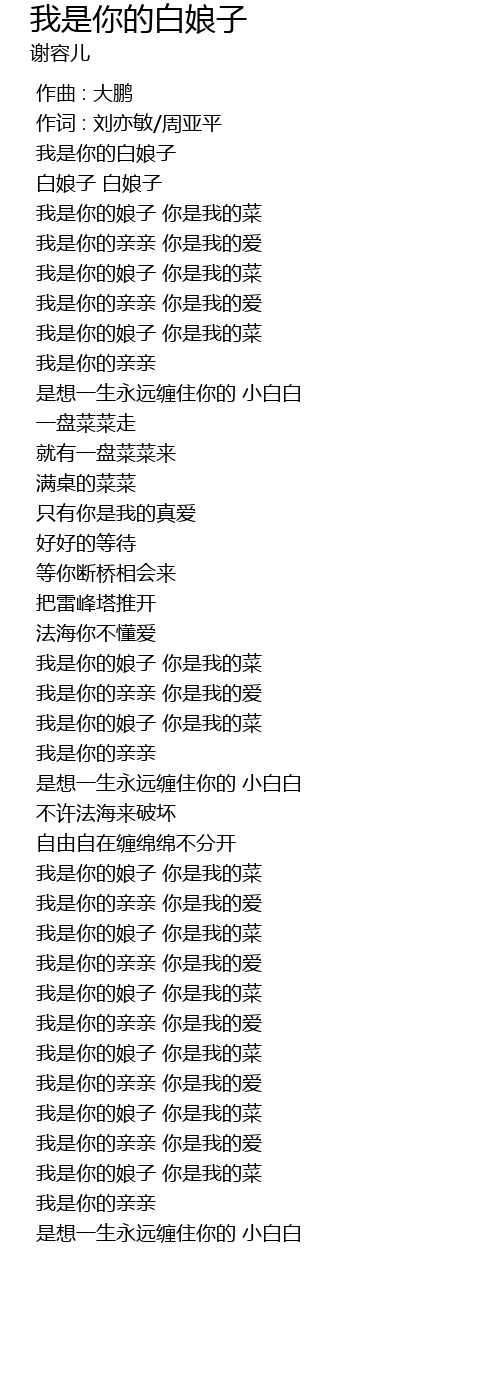| [03:12.71] | 是想一生永远缠住你的 小白白 |