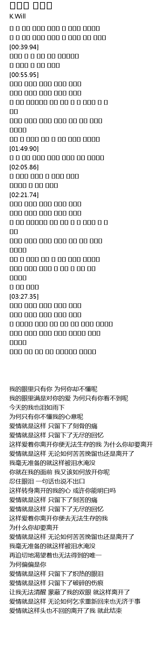 [03:38.66] 사랑은 이렇게 찢어진 상처만 남기고