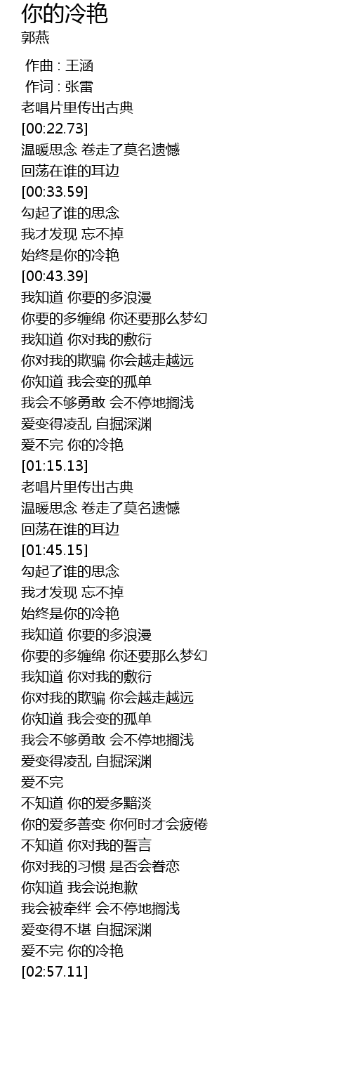 | [02:49.81] | ài bù wán nǐ de lěng yàn |