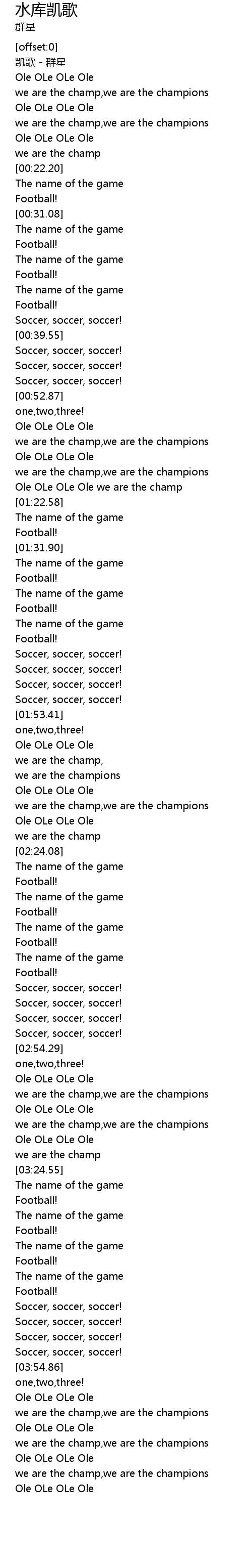 | [01:16.87] | Ole OLe OLe Ole we are the champ |