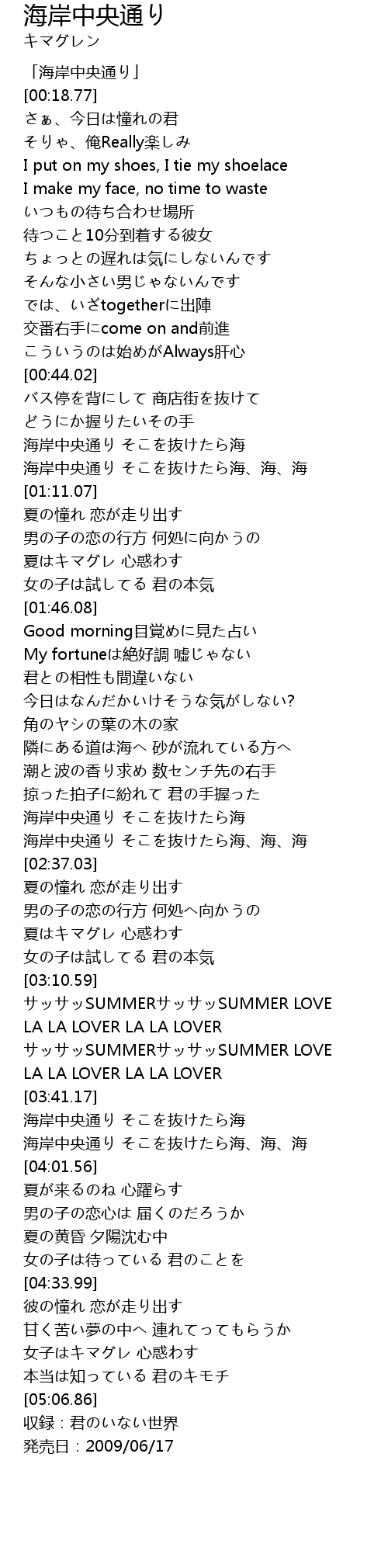 | [00:52.76] | 海岸中央通り そこを抜けたら海 |
