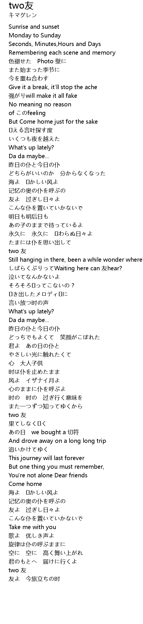 | [02:11.73] | しばらくぶりってWaiting here can 友hear? |