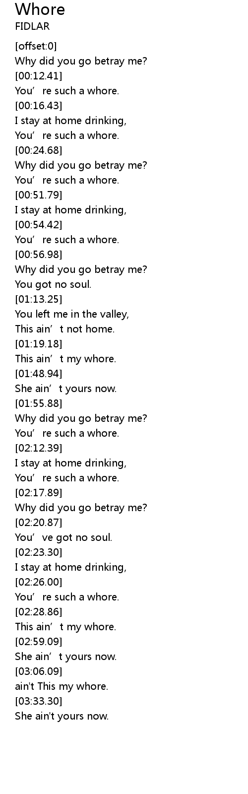 | [03:29.79] | ain' t This my whore. |