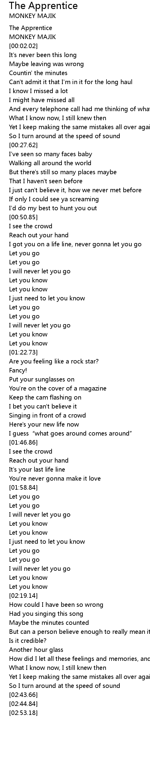 | [01:43.21] | I guess" what goes around comes around" |