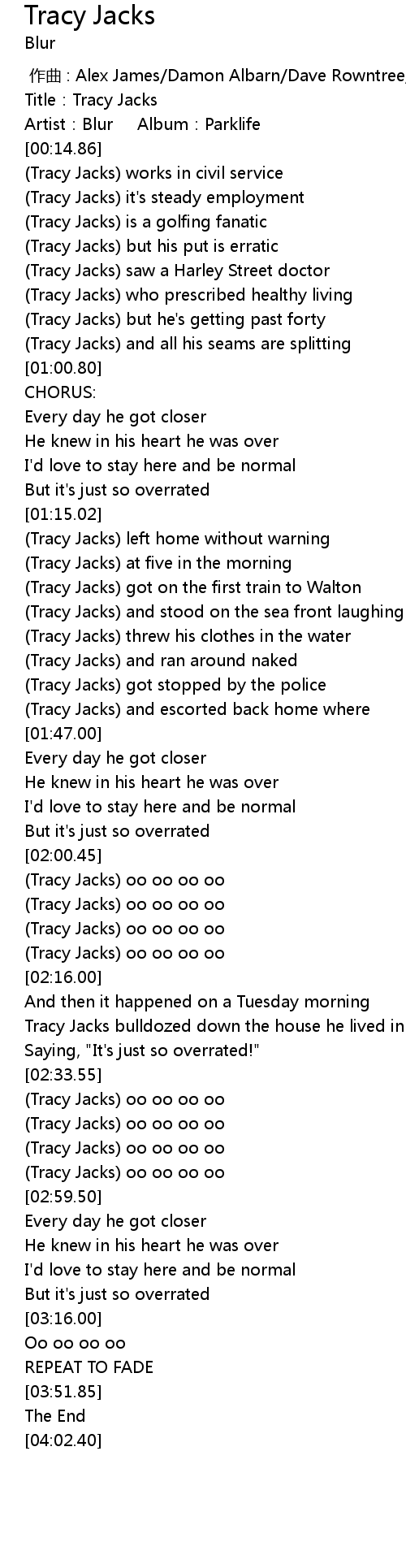 | [00:07.96] | Artist: Blur Album: Parklife |