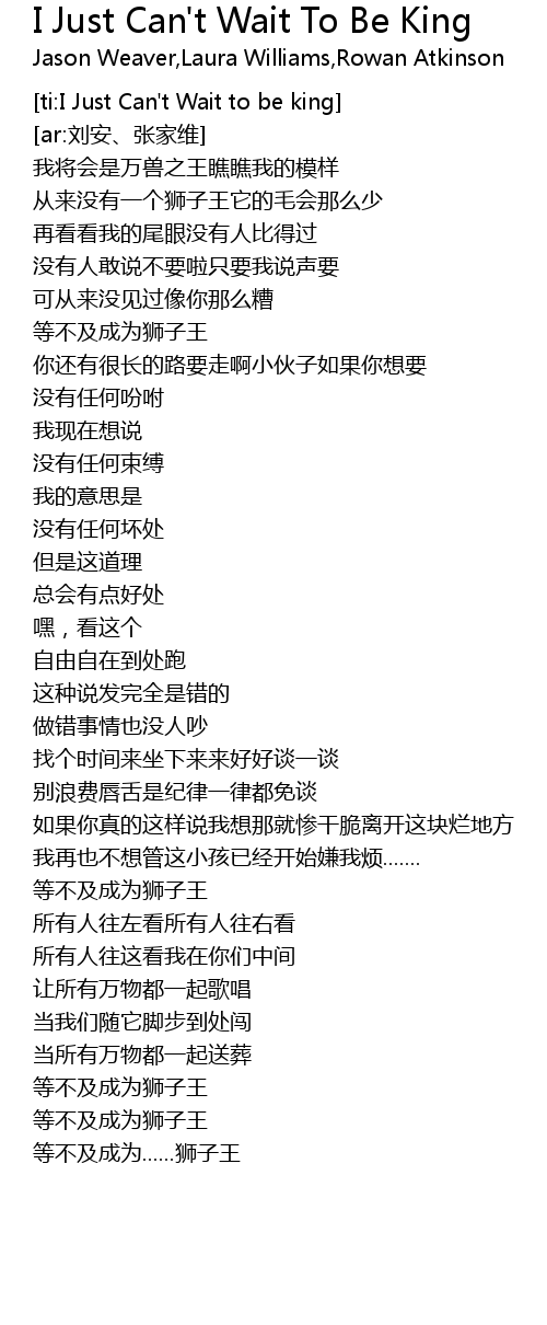 | [00:24.35] | 我将会是万兽之王瞧瞧我的模样 |