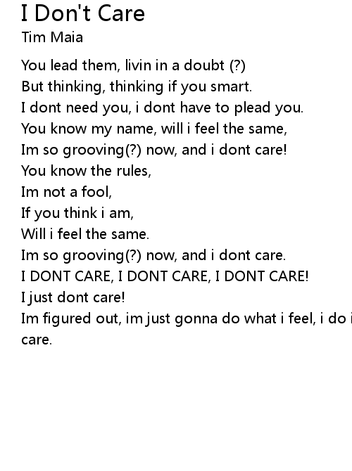 | I DONT CARE, I DONT CARE, I DONT CARE! | |