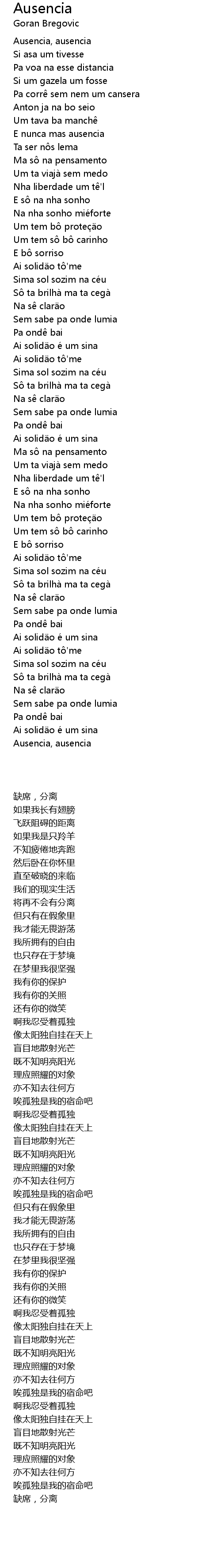 | [00:45.61] | E nunca mas ausencia |
