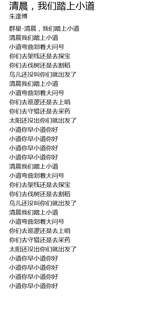 | [00:10.456] | qīng chén wǒ men tà shàng xiǎo dào |