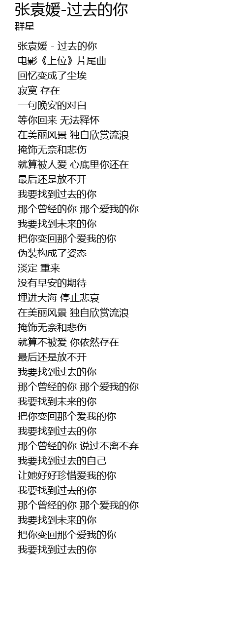 | [00:00.00] | 张袁媛 - 过去的你 |