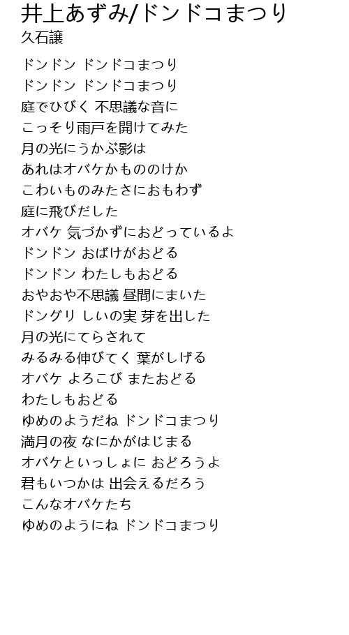 | [03:01.09] | ゆめのようにね ドンドコまつり |
