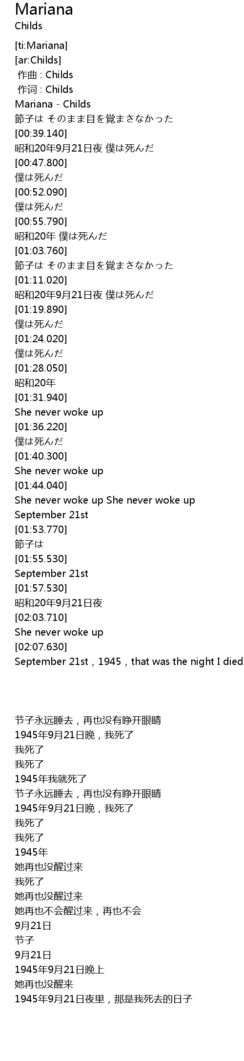 | [01:13.210] | 昭和20年9月21日夜 僕は死んだ |