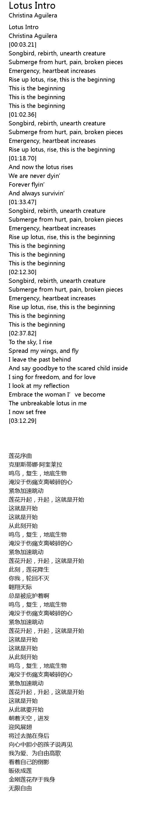 | [02:26.69] | Rise up lotus, rise, this is the beginning |
