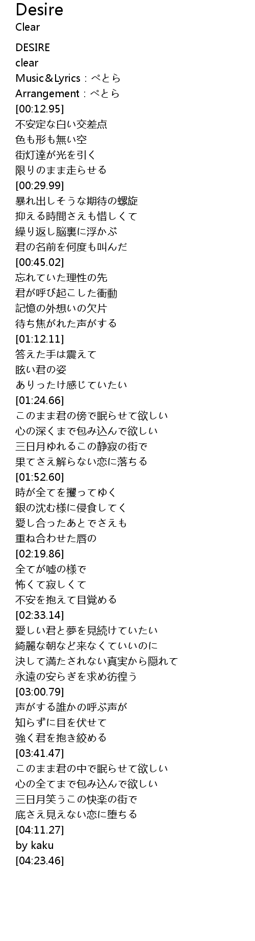 | [03:42.64] | このまま君の中で眠らせて欲しい |