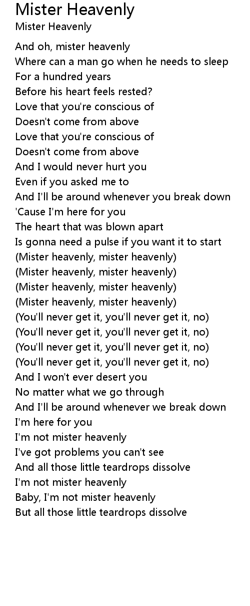 (Mister heavenly, mister heavenly) |