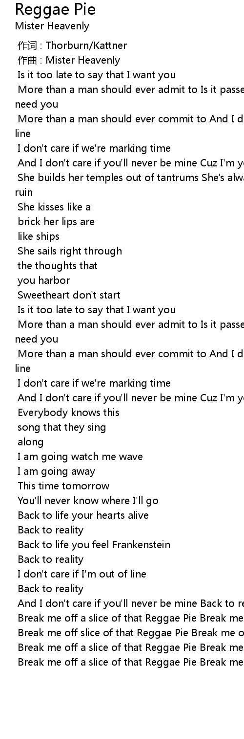 | [03:44.431] | Break me off a slice of that Reggae Pie Break me off a slice |