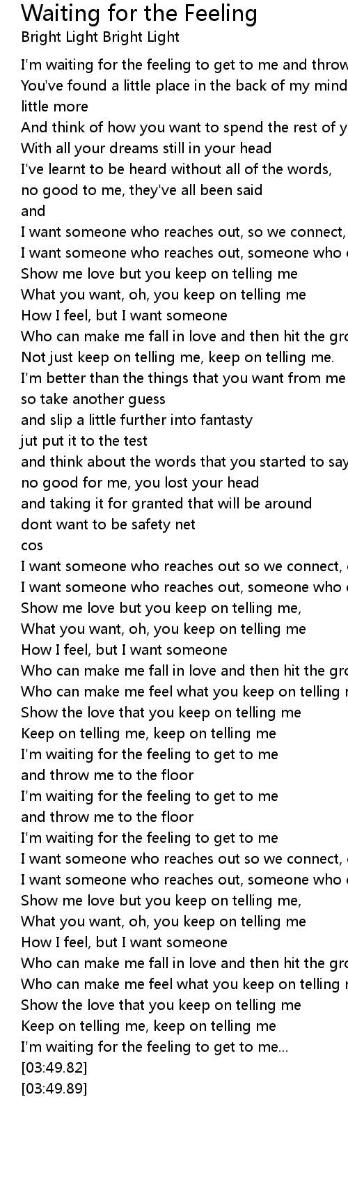 [00:15.49] I'm waiting for the feeling to get to me and throw me to the floor