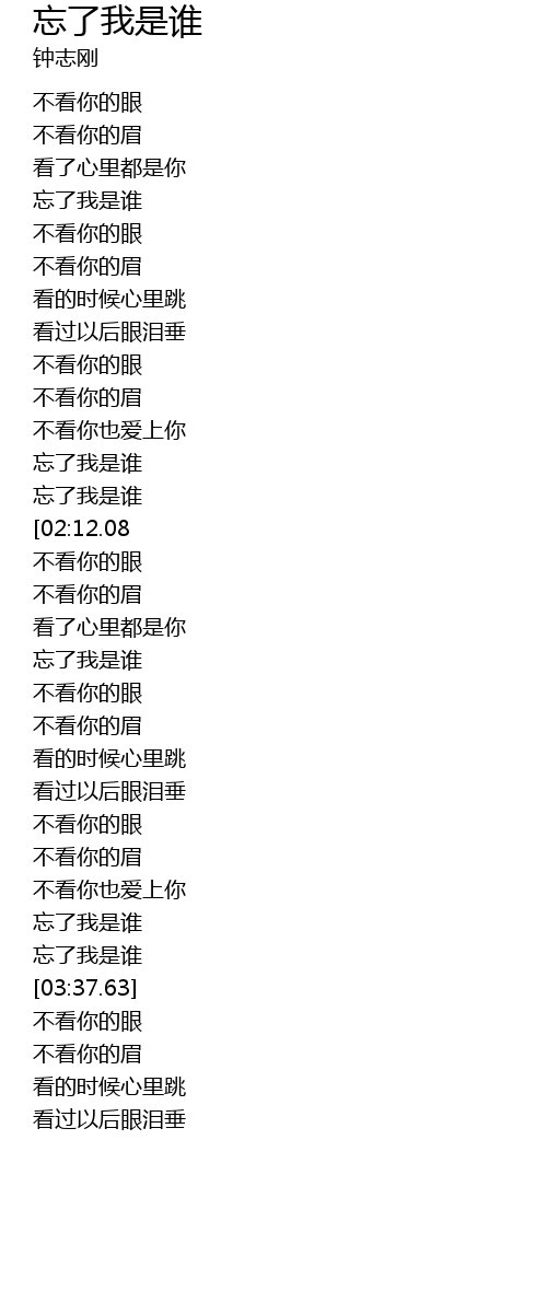 | [03:18.03] | 忘了我是谁 |