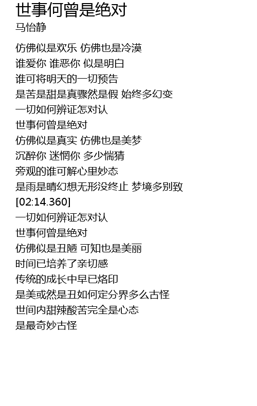 | [01:41.510] | shi shi he zeng shi jue dui |