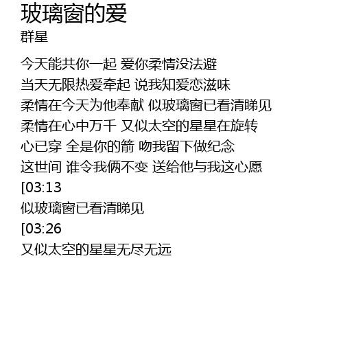 | [03:50][03:26][03:01][02:13] | 柔情在心中万千 又似太空的星星无尽无远 |