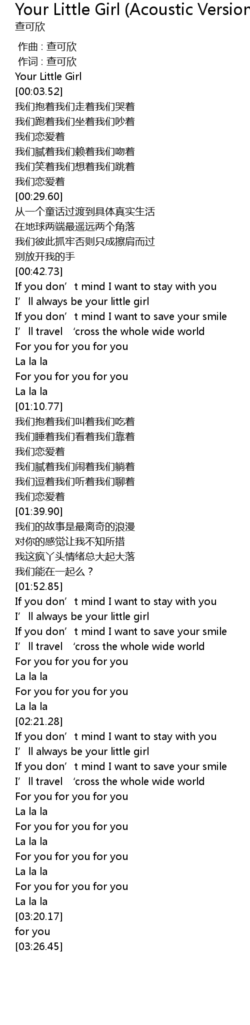 | [00:01.18] | Your Little Girl |