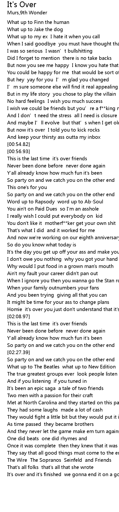 | [02:05.04] | Homie it's over you just don't understand that it's over |