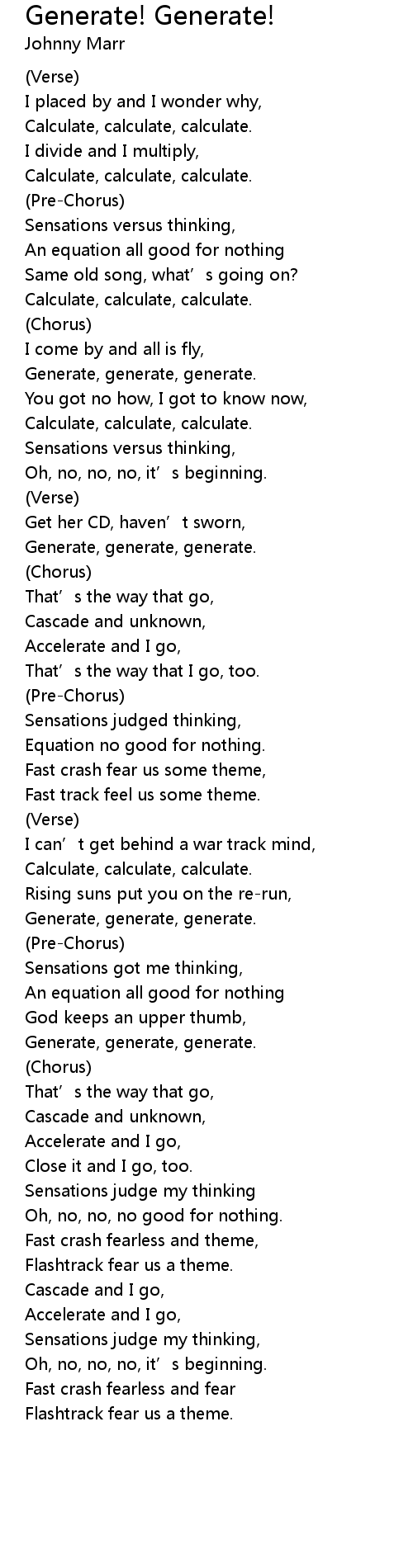 | Song | Generate! Generate! |