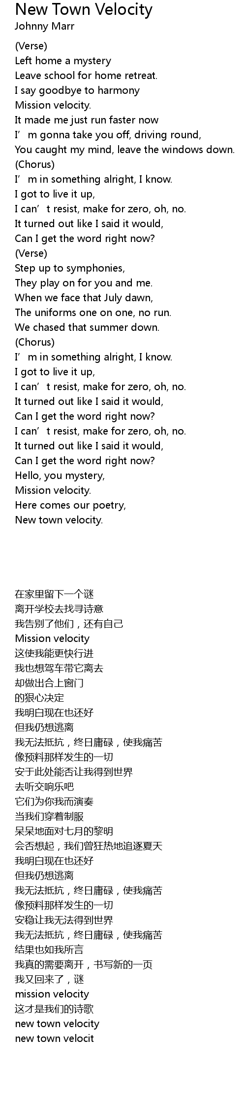 | Song | New Town Velocity |