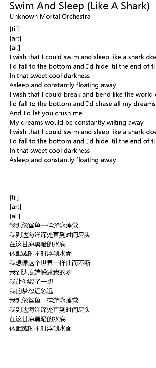 I wish that I could swim and sleep like a shark does |