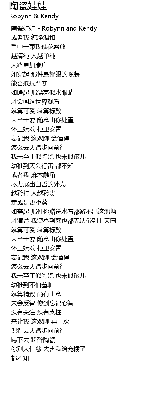 | [00:01.500] | 陶瓷娃娃 - Robynn and Kendy |