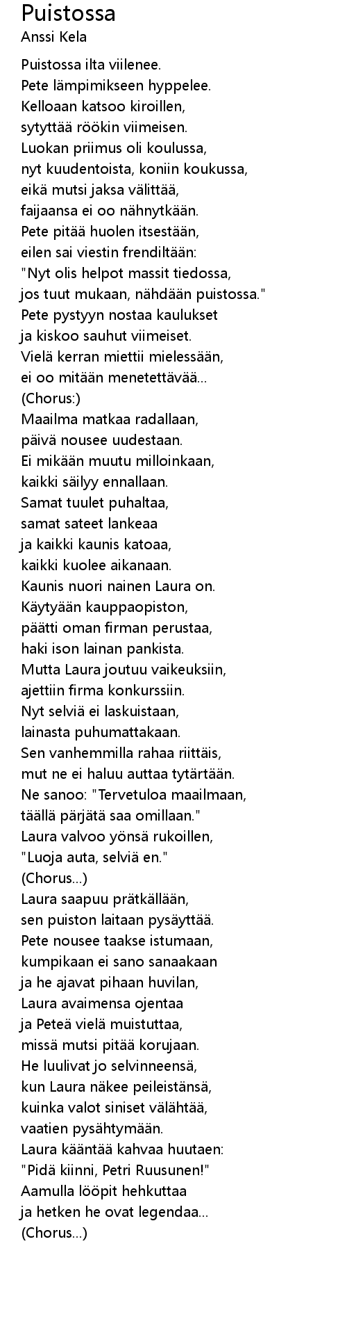 | Song | Puistossa |