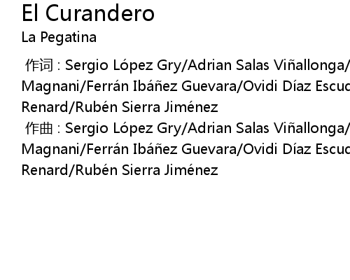 | [00:00.000] | zuo qu : Sergio Lo pez Gry Adrian Salas Vi allonga Axel Didier Magnani Ferra n Iba ez Guevara Ovidi Di az Escudero Romain Henri Roger Renard Rube n Sierra Jime nez |