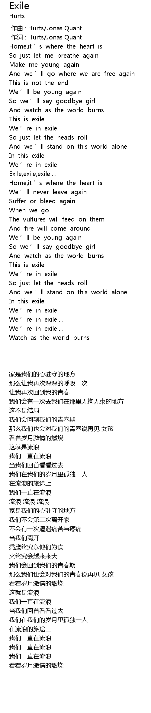 | [00:01.00] | zuò cí : Hurts Jonas Quant |
