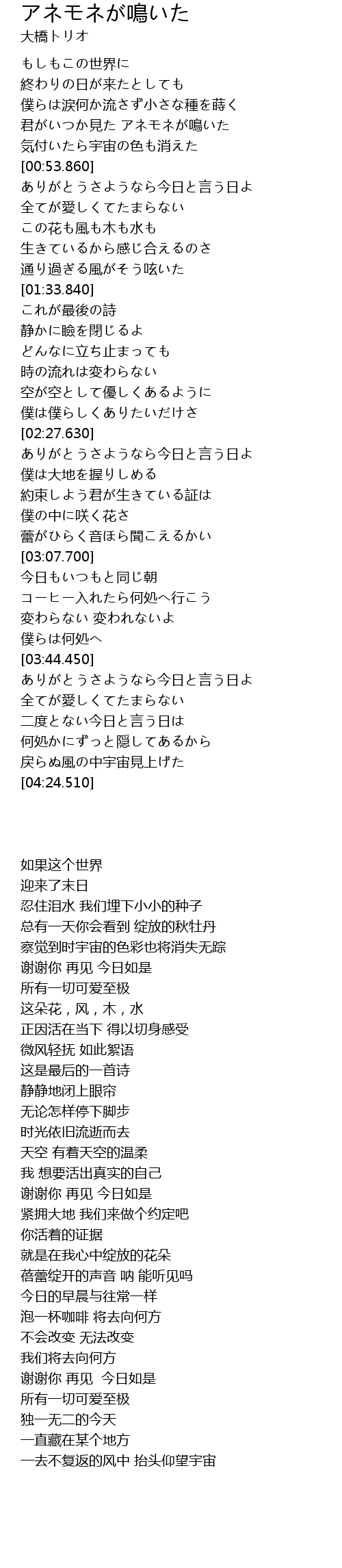 | [00:37.660] | 君がいつか見た アネモネが鳴いた |