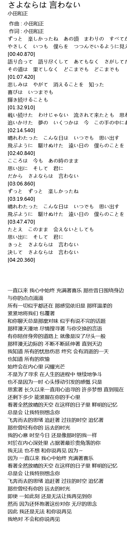 | [04:14.960] | 決して さよならは 言わない |