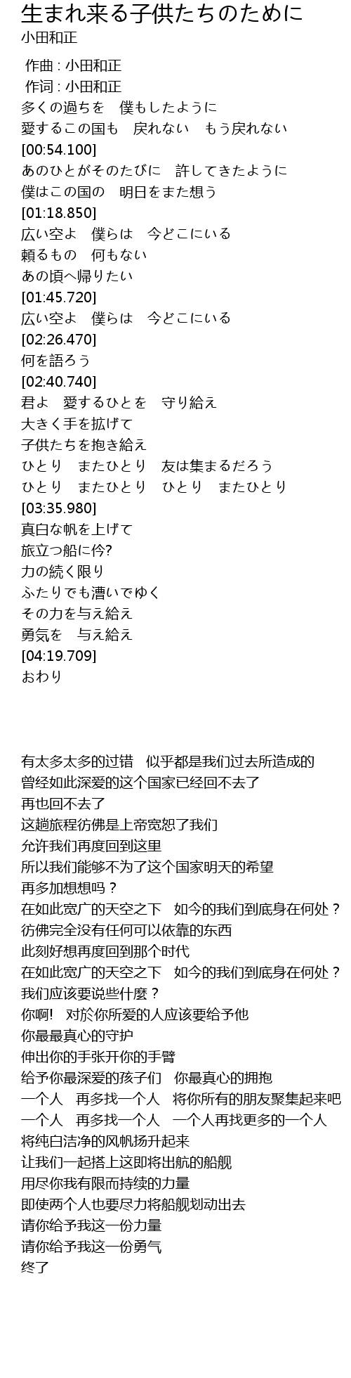 | [01:08.270] | 僕はこの国の 明日をまた想う |
